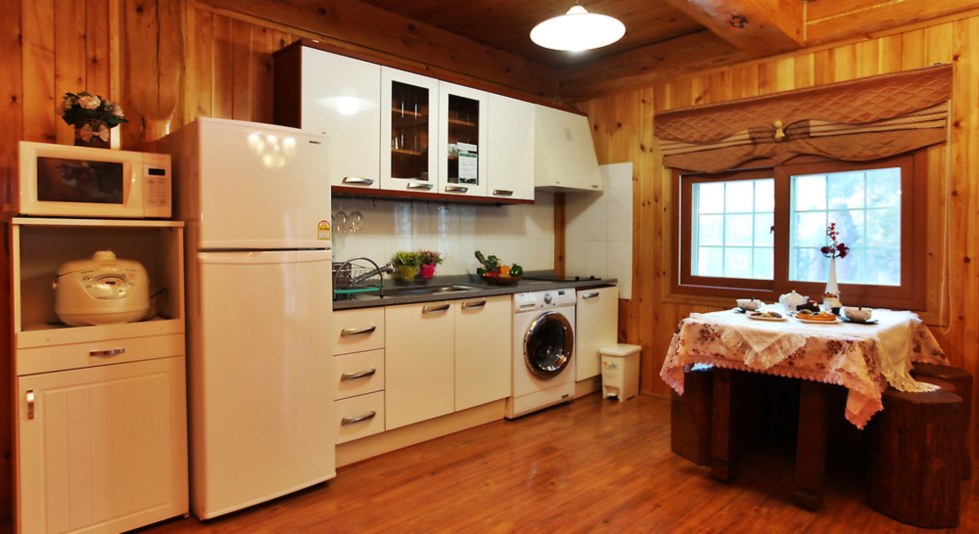 • 시설 : TV, 침대, 식탁, 에어컨, 냉장고, 선풍기, 세탁기, 가스렌지, 드라이기, 취사, 전기밥솥, 컴퓨터, 전자레인지, 욕실용품, 비데 등