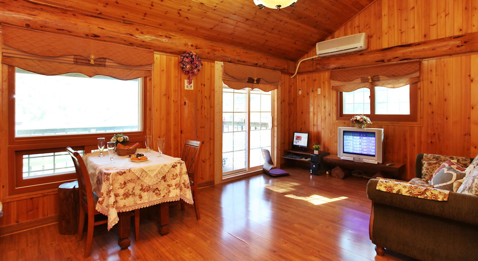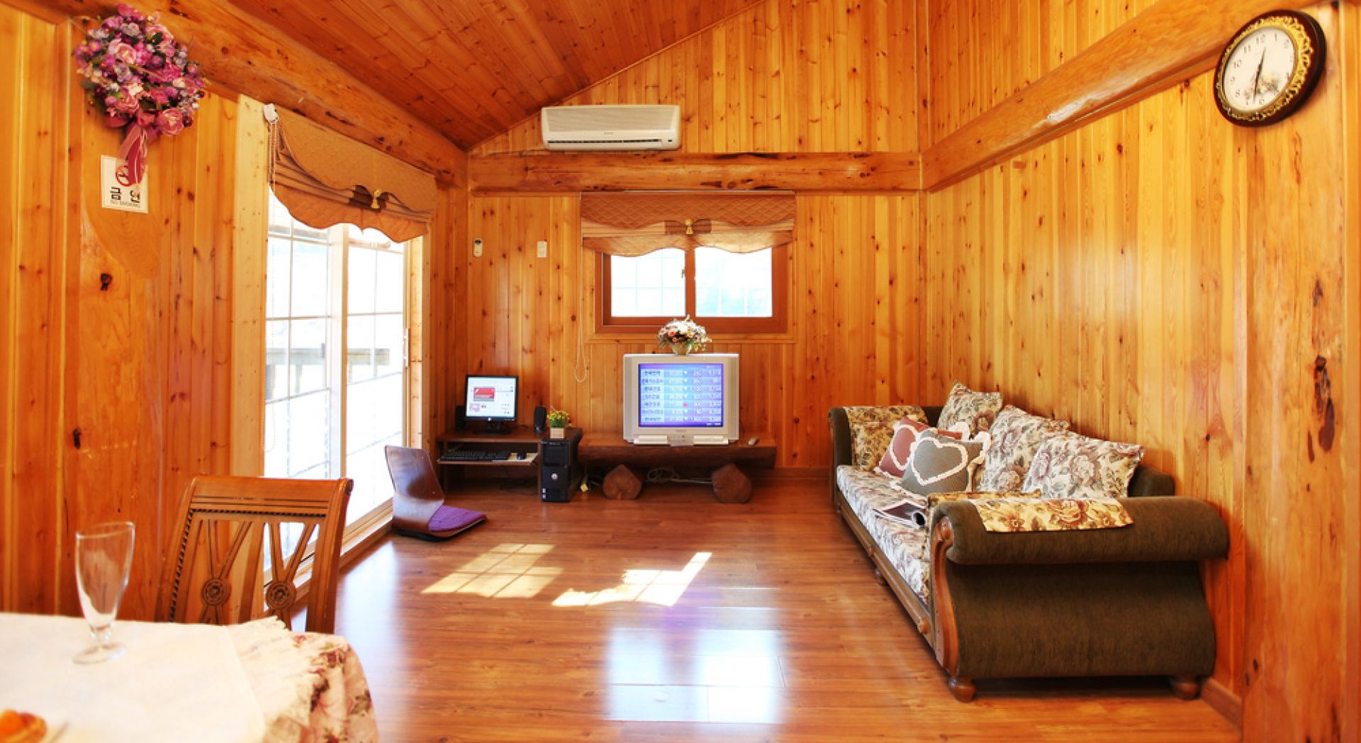 2층에 위치하여 펜션앞 전경이 한눈에 바라다 보이는 객실로 역시 20평형입니다. 계절을 초월하여 봄부터 겨울까지 다양한 테마로 즐기실 수 있는 무주, 나오스로 당신을 초대합니다.